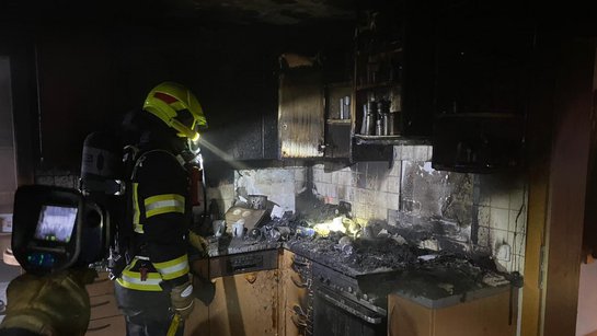 Beim Eintreffen an der Einsatzstelle befanden sich die Besitzer unverletzt im Freien. Es wurde bestätigt, dass sich keine weiteren Personen mehr im Gebäude befinden und der Brandherd in der Küche liegt. Bereits von außen war ein deutlicher Rauchaustritt aus den Fenstern erkennbar.