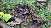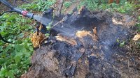 Der Wurzelstock sorgte für eine starke Rauchentwicklung und stand bei unserem Eintreffen in Vollbrand, er wurde von den Atemschutzträgern mittels HD-Rohr gelöscht. Die Exekutive war ebenfalls am Einsatzort. Der brennende Teil des Baumes wurde vollständig abgelöscht, mit einer Axt zerkleinert und laufend mittels Wärmebildkamera kontrolliert. Um ein Wiederaufflammen zu verhindern, wurde der angebrannte Teil durch Unterstützung des Bauhofs der Stadtgemeinde Rohrbach-Berg auf einen Traktor verladen.