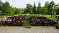 Vorführung am Marktplatz anlässlich 80tem Gründungsfest (11. und 12.7.1953) - Teilnahme von 12 Musikkapellen und Abordnungen von 60 Feuerwehren.